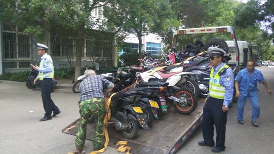根据《中华人民共和国道路交通安全法》有关规定,为加强校园交通安全管理,维护校园秩序,保障师生员工人身安全,青岛市公安交警部门于2016年10月6日对我校崂山校区无牌、无证摩托车进行了专项治理,共查扣无牌、无证摩托车100余辆。警方表示,今后将继续加大对校园无牌、无证摩托车的治理力度,根据实际情况,随时对在校园内行驶和停放的无牌、无证摩托车进行查处。法规知识:《中华人民共和国道路交通安全法》第99条规定 “未...