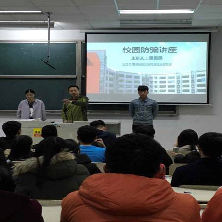 11月17日,BB贝博艾弗森官方网站崂山校区在弘毅楼E区202教室为学生会及各学院班干部170余人举行了校园安全知识讲座,讲座结合实际,讲解了发生在高校校园内的真实案件及如何预防等知识,根据案例的特点,就如何防盗、防骗、防传销进行了讲解。现场采取与学生互动的方式对同学们关心的校园安全知识进行解答,增强了同学们的安全意识、收到良好效果。
