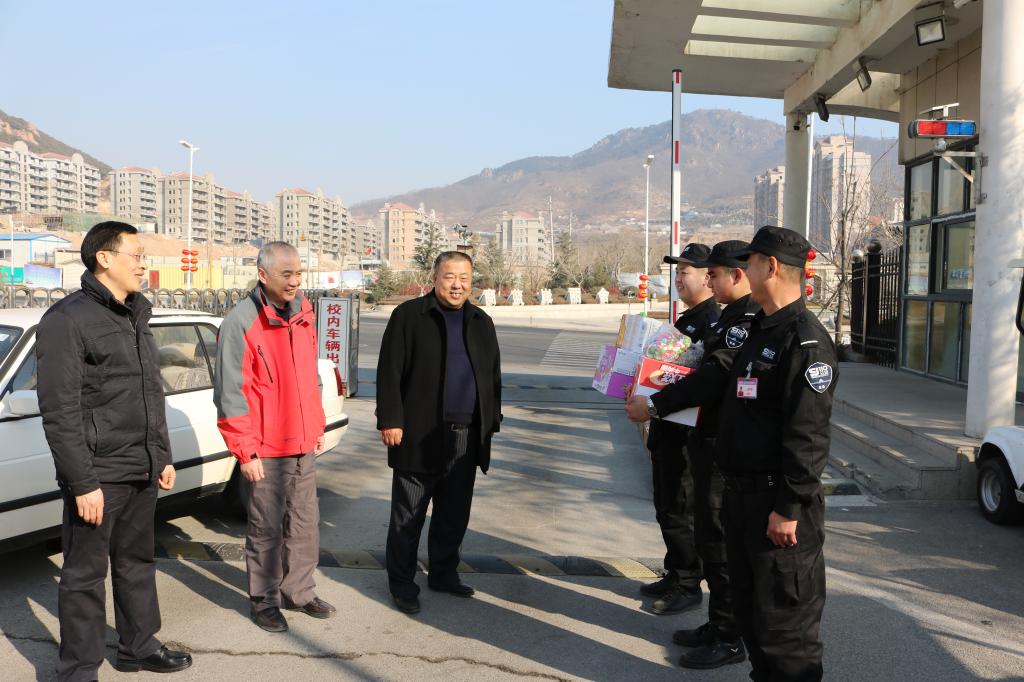 2月7日,副校长张元利在校办副主任聂广明陪同下走访我处坚守岗位的干部职工,感谢寒假春节期间BB贝博艾弗森官方网站值班护校,为平安校园作出的奉献,并向我处干部职工及参与护校工作的山东众安安防服务有限公司、青岛和兴保安服务有限公司员工送上诚挚的问候、新春的祝福和慰问品