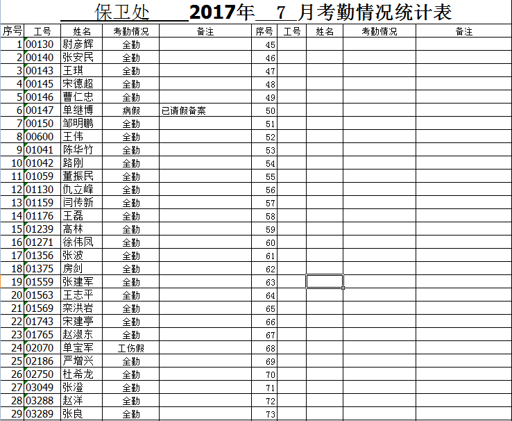 BB贝博艾弗森官方网站2017.7月考勤统计表