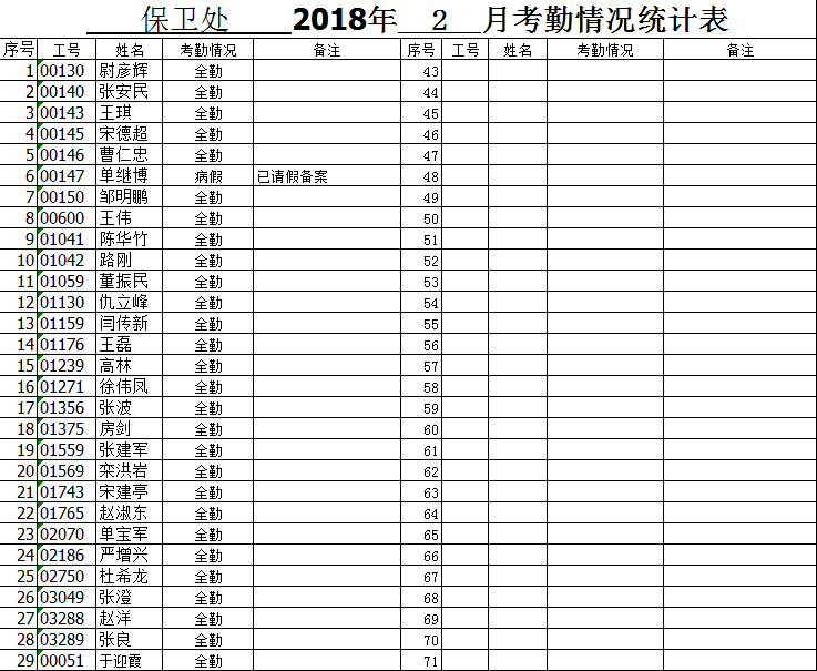 BB贝博艾弗森官方网站 2018年 2 月考勤情况统计表