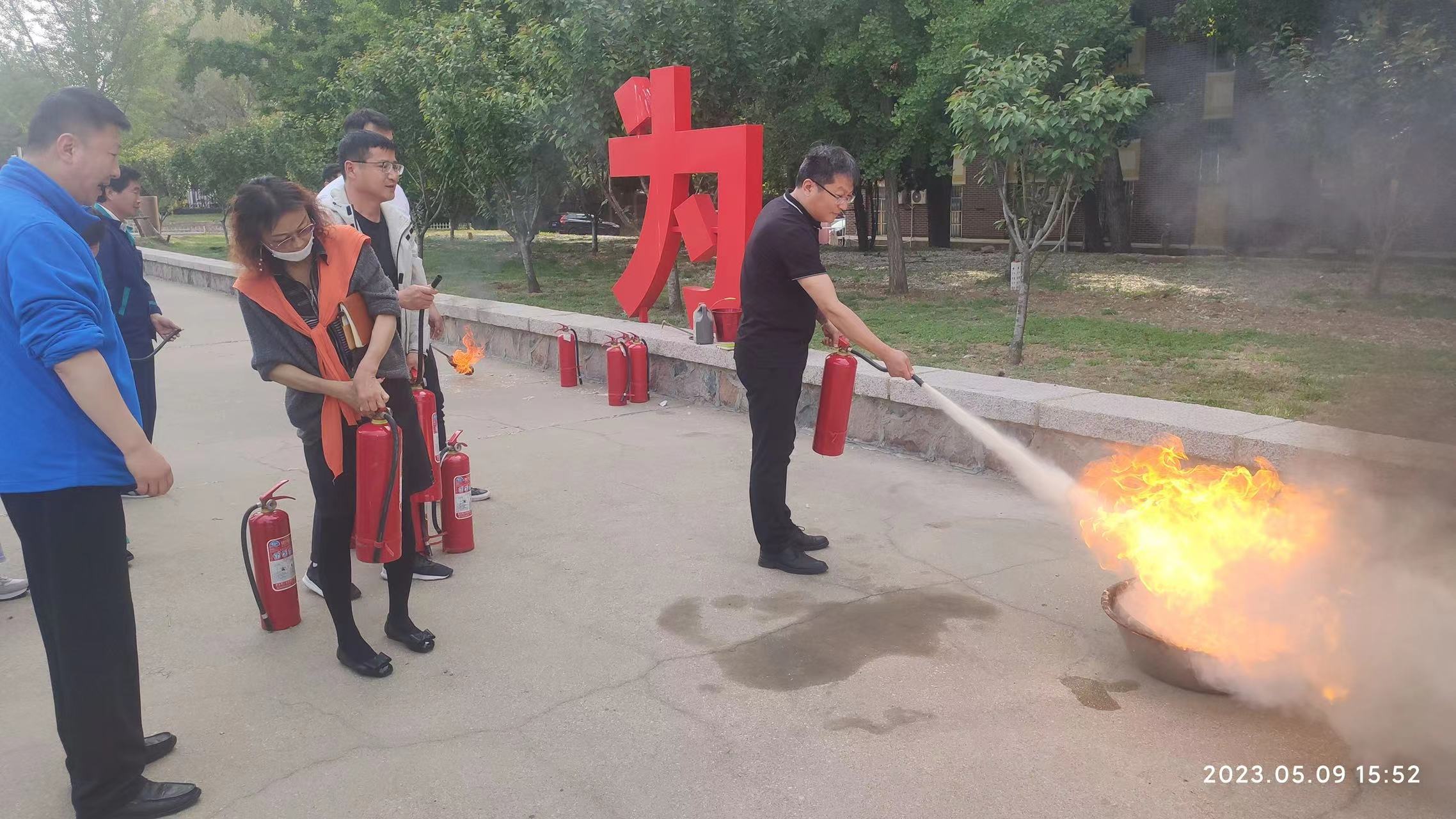 安全教育活动结束后,组织了灭火实战演练,有效将教育活动成果转化为工作实效。