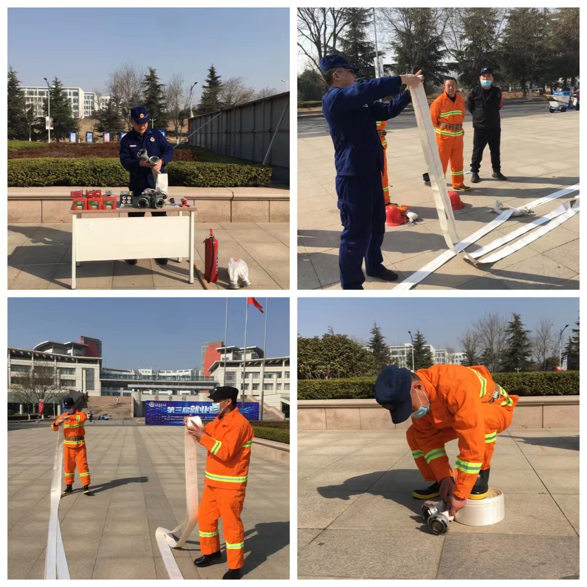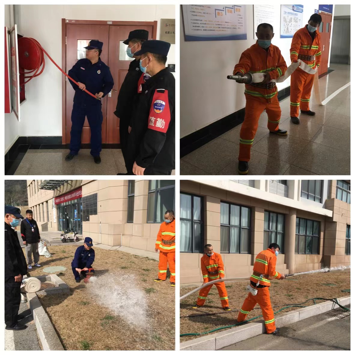 培训结束后,在D1实验楼开展了联合灭火演练,模拟如何快速利用室内、外消火栓进行扑救初起火灾,第一时间将火情消灭在萌芽状态。通过实战演练深入检验了队员学习成效,加强了队伍建设,积累了经验,为更好地适应新形势下应急处置任务打下坚实基础。