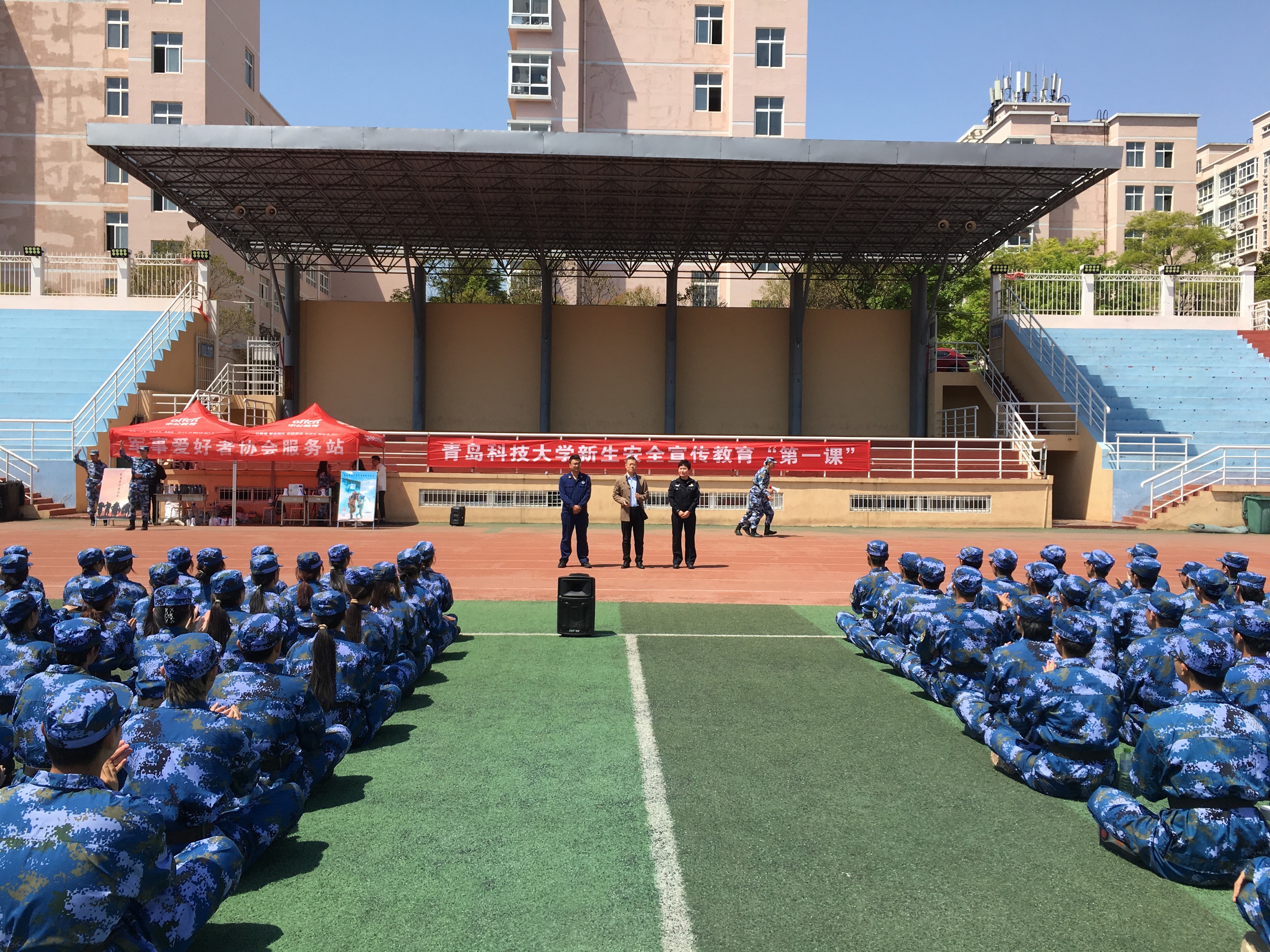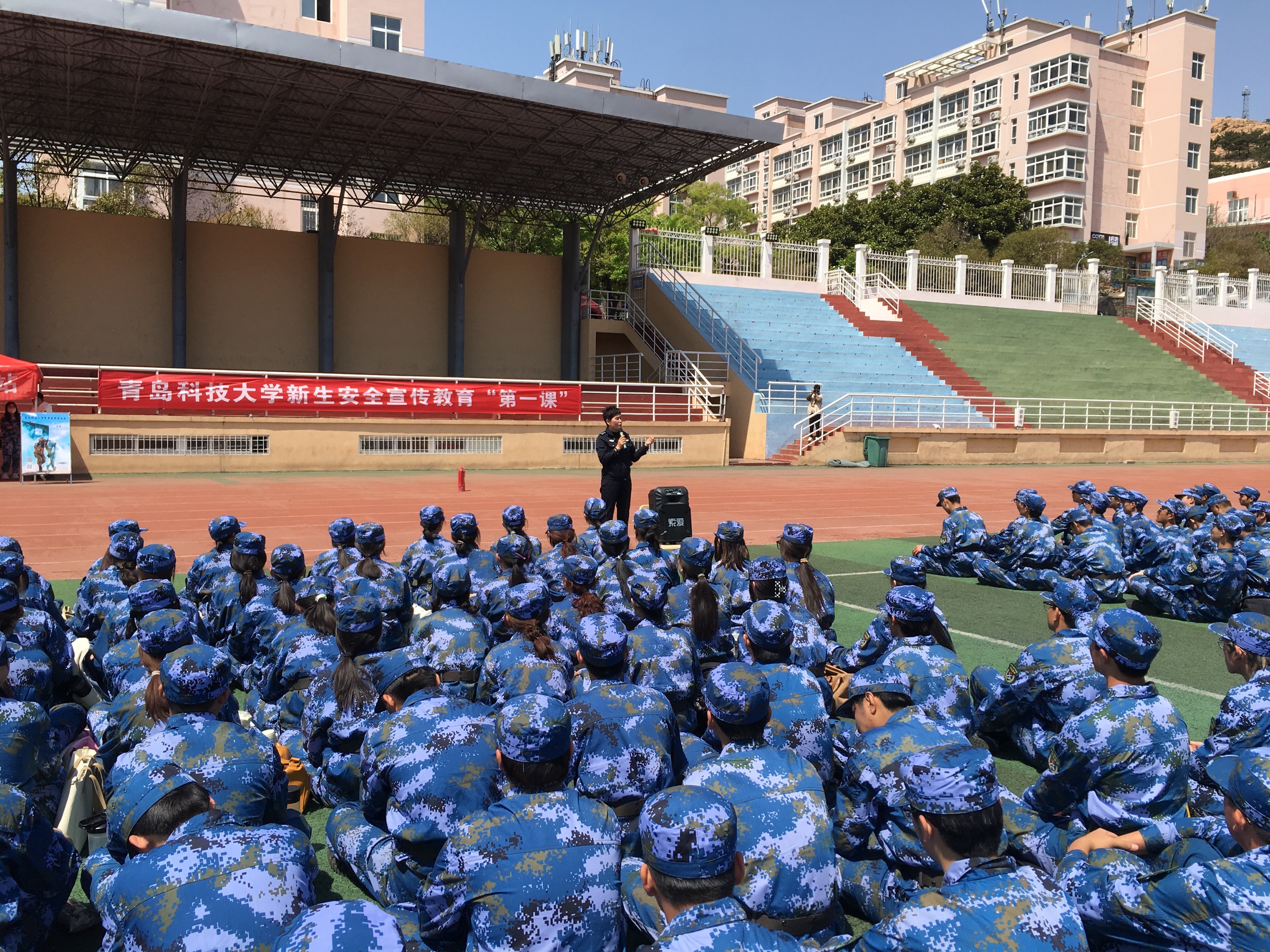 为进一步筑牢校园安全防线,强化师生安全防范意识和应对突发事件的能力,4月26日上午,BB贝博艾弗森官方网站开展安全教育进军训系列活动。此次活动在两校区同步进行,崂山校区特邀崂山区消防救援大队宣教中心主任孙斌、中韩派出所住校民警周迎辉警官、四方校区治安科科长单宝军进行专题授课。