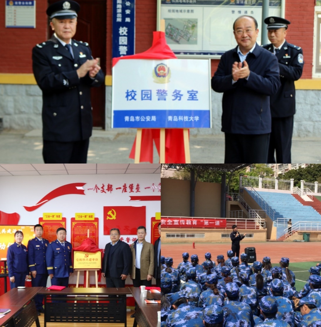 发挥校地联动实效,努力增强师生安全防范能力。BB贝博艾弗森官方网站积极联系属地安防部门,以党建和主题教育为桥梁,将专业的防范力量及时融入校园。4月4日,BB贝博艾弗森官方网站党支部主动与崂山区消防救援大队基层党委签约党建共建,“党建互学”深化交流,发挥消防救援党建特色引领作用,邀请属地消防大队来校进行现场观摩授课,不断丰富主题教育内涵。结合2022级学生军训,积极协调公安、消防利用训练间隙开展安全教育,从电信反诈、火灾防范到校园治安,全面覆盖师生大学生活所需安全知识。5月9日,学校校园警务室正式揭牌运行,驻地公安专业力量全面进入校园,以校园警务室为载体,“校警高效联动”的校园安全治理模式得到升华。