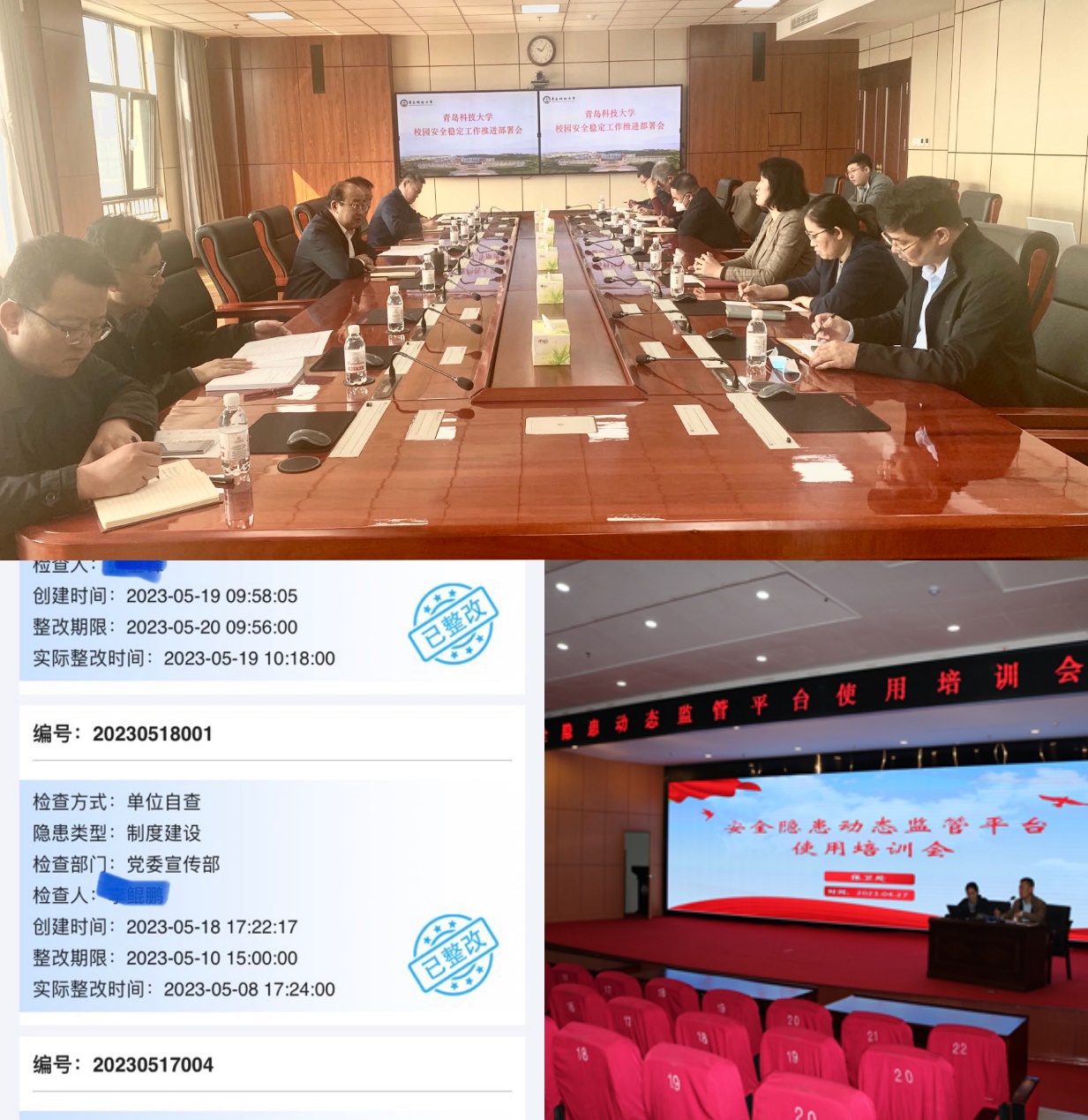 狠抓隐患排查整治,切实提升校园生活安全指数。BB贝博艾弗森官方网站积极构筑大安全体系,通过八个安全专班实现校园安全领域全面排查整治。牵头定期召开学校安全专班协调会,专题研讨安全隐患排查整治情况,针对收集到的安全隐患问题,逐一梳理,归纳分类形成问题清单、责任清单、任务清单,针对性的逐一列出解决措施、责任单位、责任人和整改完成期限,压实责任。同时借助信息化手段,正式上线安全隐患动态监管平台,并对学校各院级单位日常安全管理负责人开展使用培训会,及时进行安全隐患信息传递,实现闭环管理,积极构建“人人关心安全隐患,人人发现安全隐患,人人上报安全隐患”的校园安全新局面。