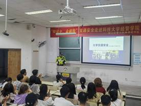 崂山交警大队风景区中队颜警官就交通安全现状、电动车安全、大学生常见交通违法等五个方面进行了讲解,通过切身经历,入校的所见所闻和崂山区、西海岸新区的交通安全宣传视频,告诉同学们要遵守交通规则,增强防范意识,发生安全事故后及时运用法律手段进行处理。