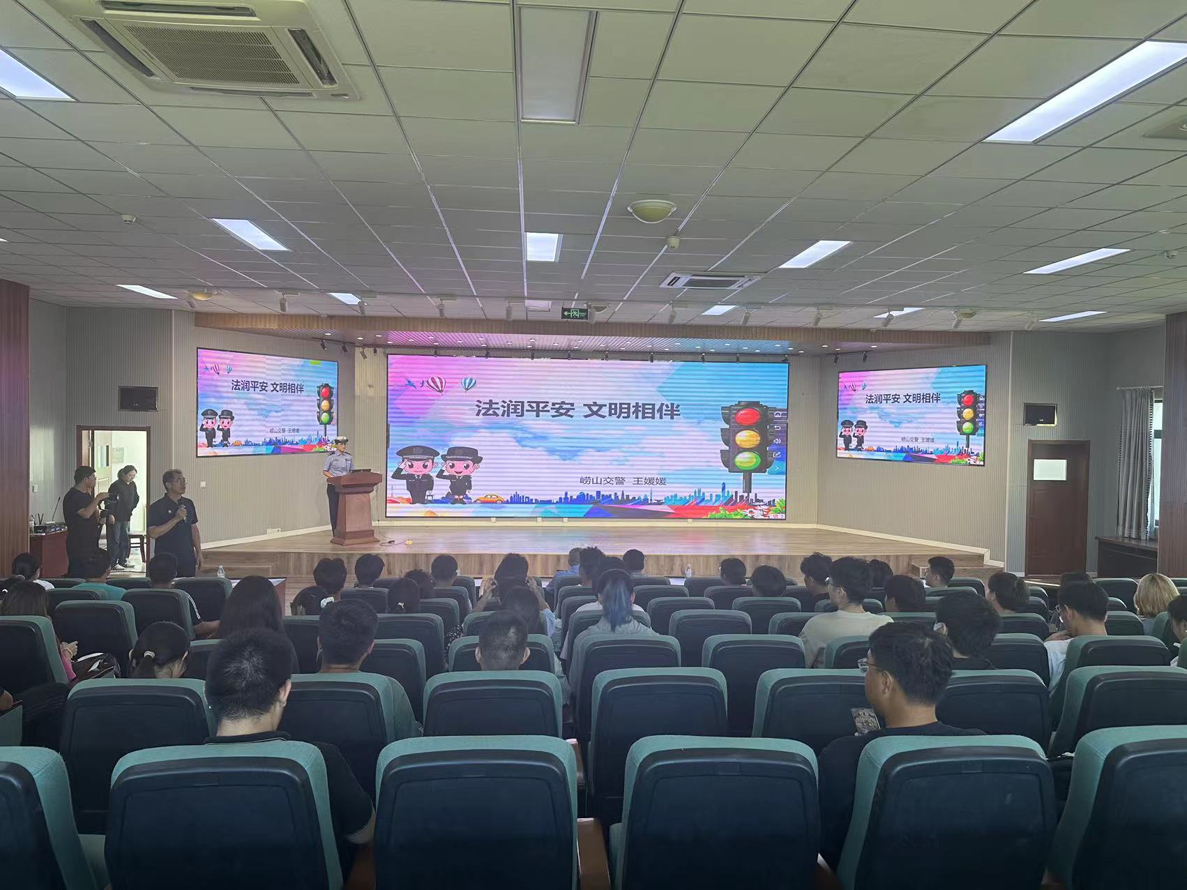 9月24日下午,在即将迎来新中国第七十五个国庆节之际,应学校大量师生游历祖国大好河山的出行需要,学校安全管理处携手崂山区交警大队共同为学校师生开展《法润平安文明相伴》交通安全教育宣讲活动。出席活动的有崂山区交警大队宣传科科长王媛媛,学校安全管理处副处长曹永俊,崂山校区各学生班级班长或团支书等100余人。活动由安管处副处长曹永俊主持。