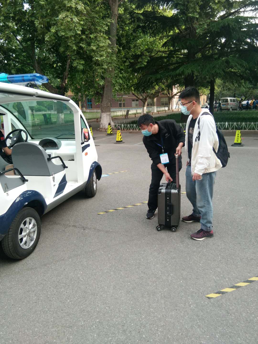 由于疫情防控需要,为了减少人员聚集,在学生返校当天,学校要求校外私家车辆和家长等陪同人员一律不能进入校园。为帮助入校后的学子尽快、轻松“返家”,回到各自寝室,BB贝博艾弗森官方网站党支部组织了“党员志愿服务队”,把四台消防治安电动巡逻车设立成返校学子行李搬运的“爱心专车”,并由处内党员轮流充当“托运员”,帮助有需要的部分学子把大件行李从学校门口运送至宿舍楼门口,减轻了返校学子们从学校门口到宿舍门口的物资运输难题。
