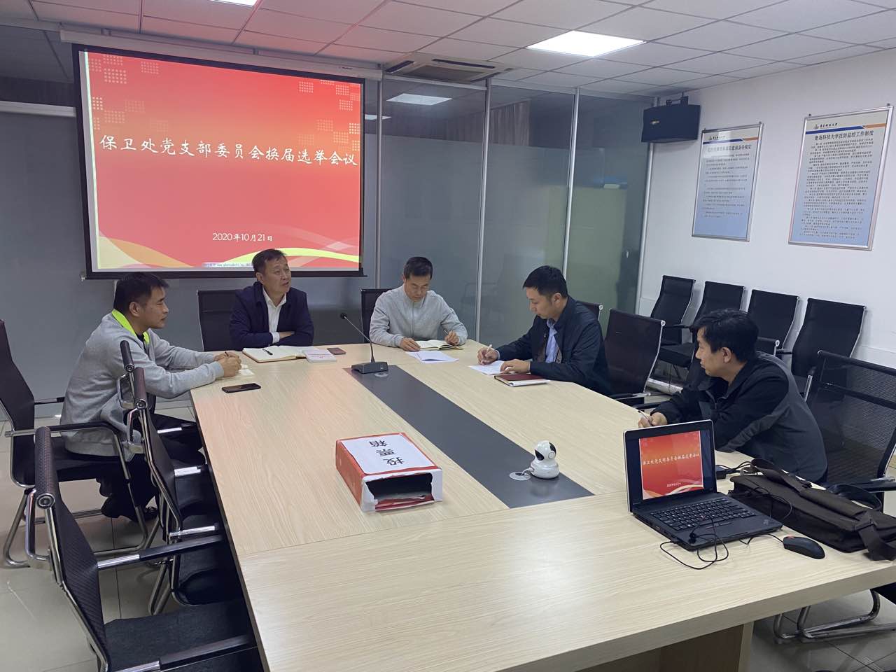 10月21日下午,BB贝博艾弗森官方网站党支部在崂山校区监控室会议室召开全体党员大会,进行支部委员会换届选举。会上,严增兴同志代表上届支部委员会进行了工作报告,张良同志报告了党费使用情况,余全波同志宣读了换届选举办法,最后通过民主投票,选取了由王佐林、严增兴、闫传新、单宝军、张良组成的新一届支部委员会。随后召开了BB贝博艾弗森官方网站党第一次支委会,选举确定了书记、副书记,并进行了其它支委的工作分工。