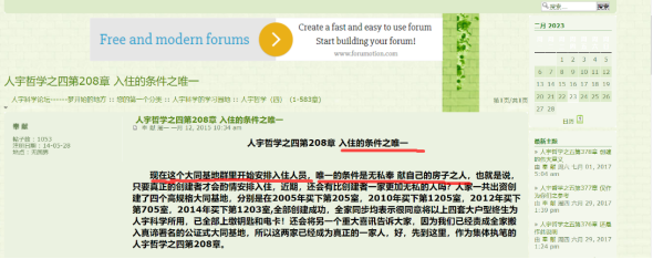▲在该组织自建“人宇科学论坛”中(已停更)称“入住大同基地的唯一条件”是“无私奉献自己的房子之人”